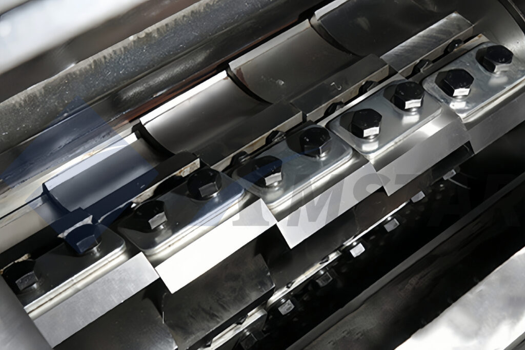 1. Screen Filtration: Once particles reach a small enough size, they pass through a screen (typically 10 – 12 mm), ensuring uniform output for downstream processing.