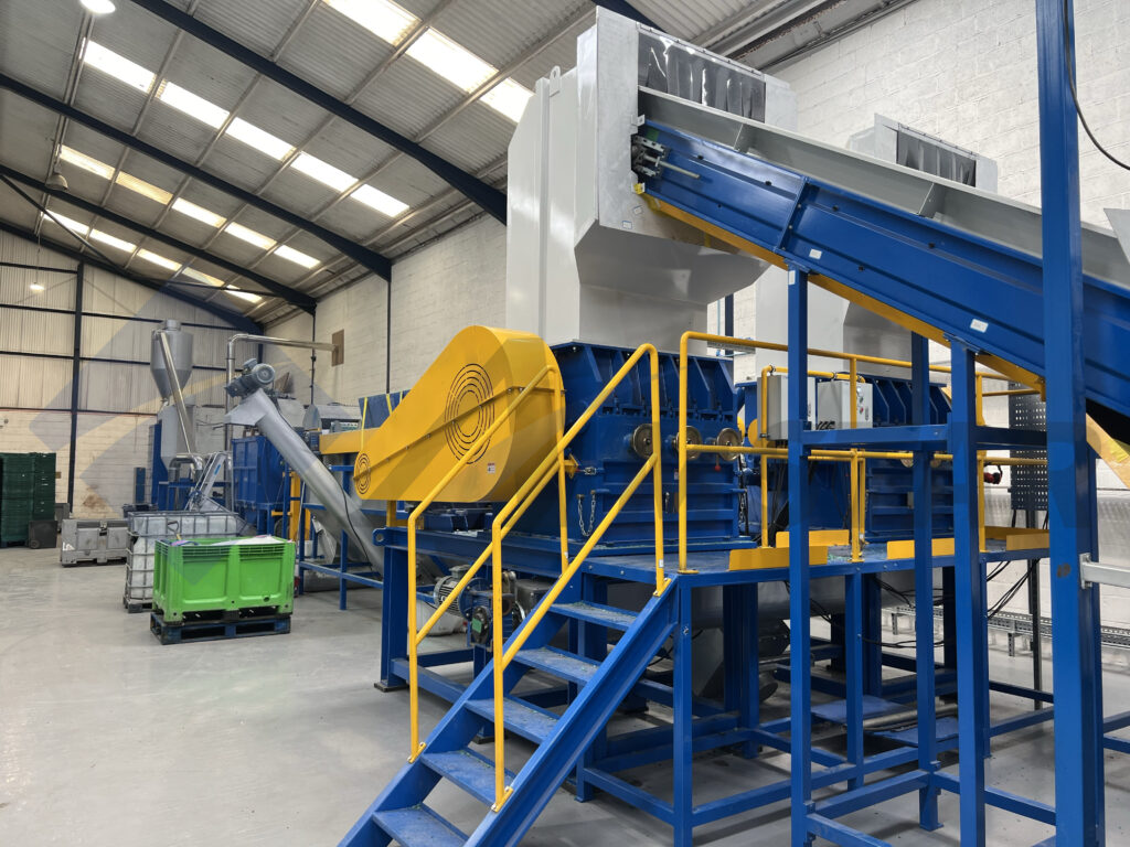 For full recycling lines, a crusher is typically positioned after a shredder and before the washing and drying system.