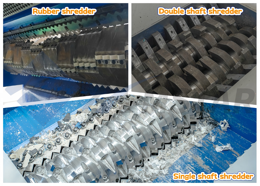 - Choose rubber shredders when processing elastic materials or tires with wire rings.