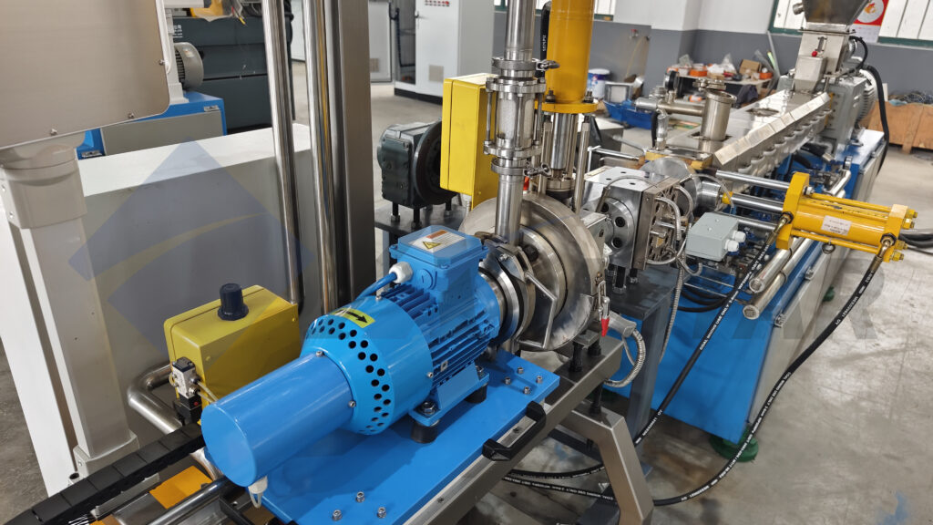 Many customers combine both systems in a two-stage pelletizing setup, using a twin screw for mixing and a single screw for high-pressure extrusion—achieving the best performance for difficult materials.